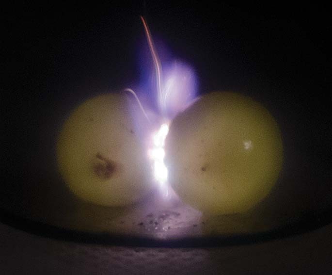 포도를 반으로 자른 뒤 전자레인지에 넣으면